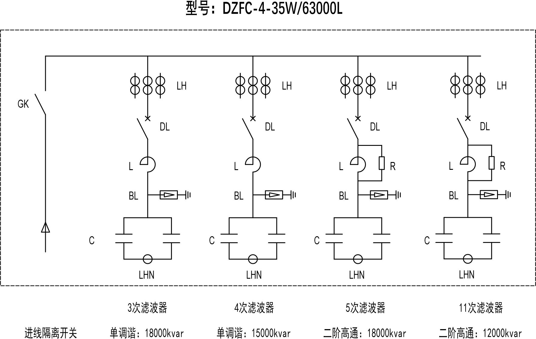 Ø 本装置滤波电阻器采用无感玻纤编制结构,可以提高高次谐波的滤波效果。